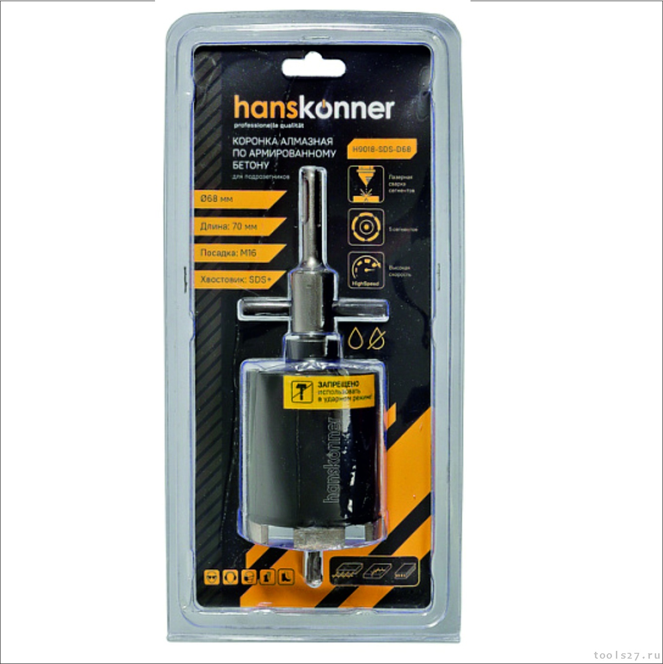Коронка алмазная по армир. Бетону 68x80 мм, 5 сегментов, Hanskonner H9018-SDS-D68