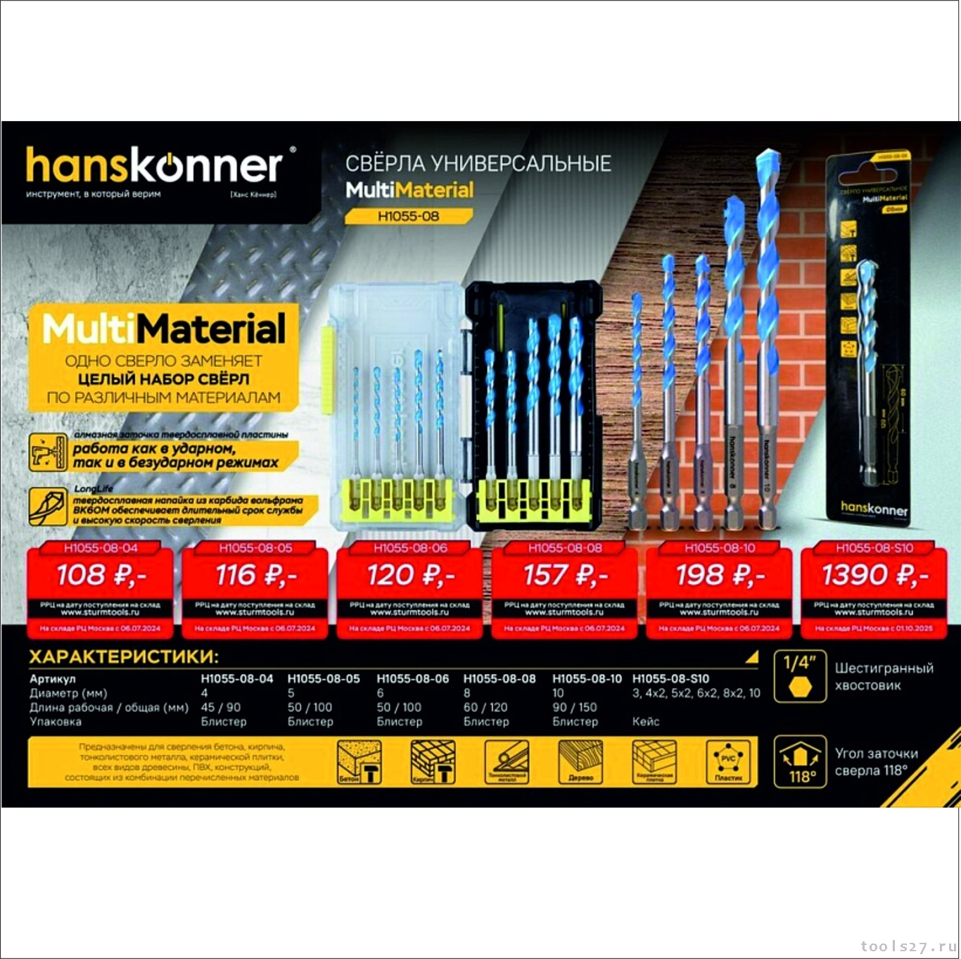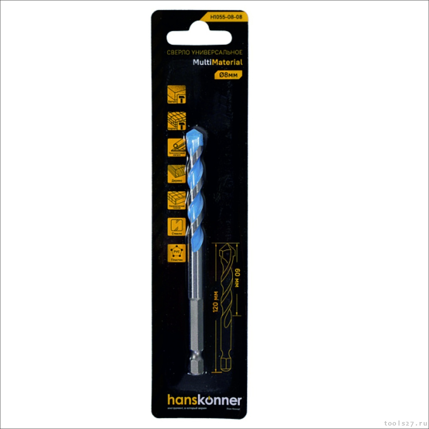 Сверло универсальное 8мм, Hanskonner H1055-08-08 (2257)