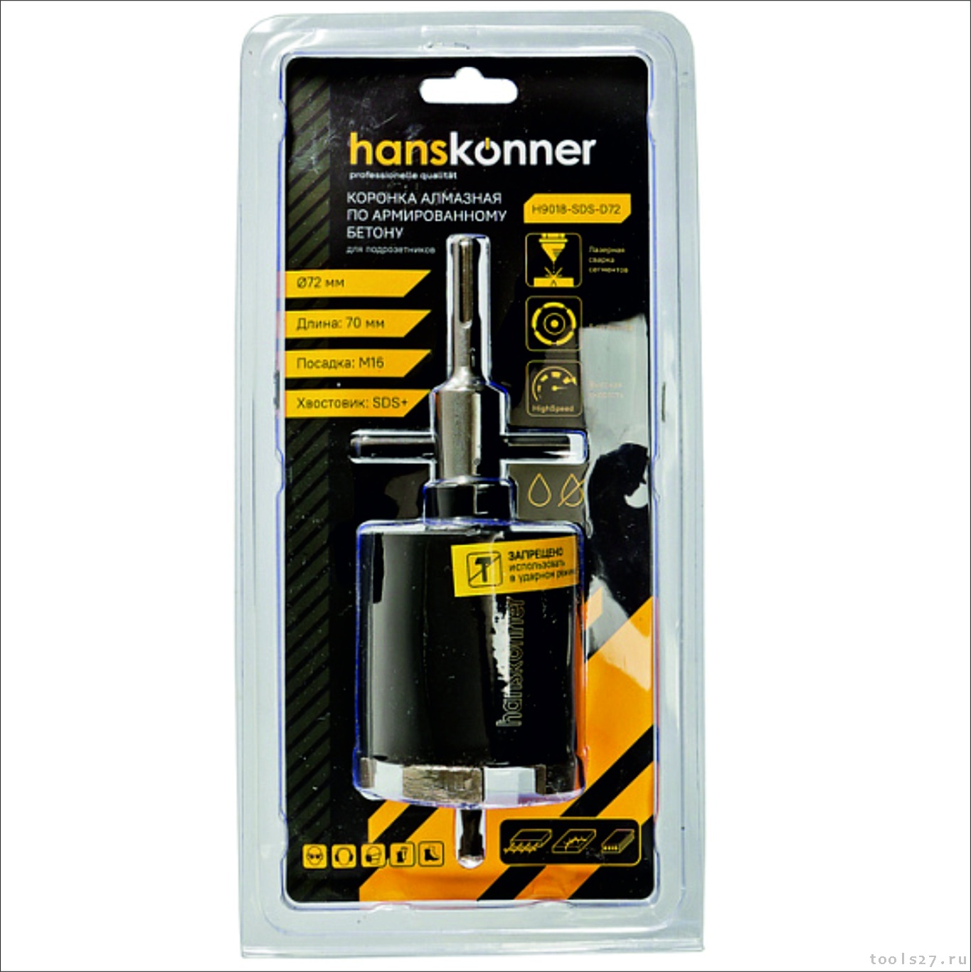 Коронка алмазная по армир. Бетону 72x80 мм, 5 сегментов, Hanskonner H9018-SDS-D72