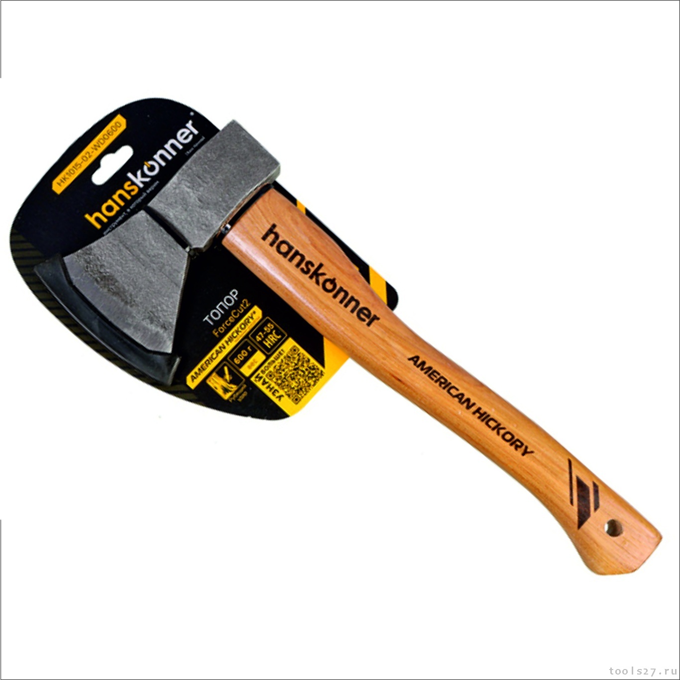 Топор деревянный 600г, длина рукоятки 360мм, рукоятка гикори, hanskonner HK1015-02-WD0600