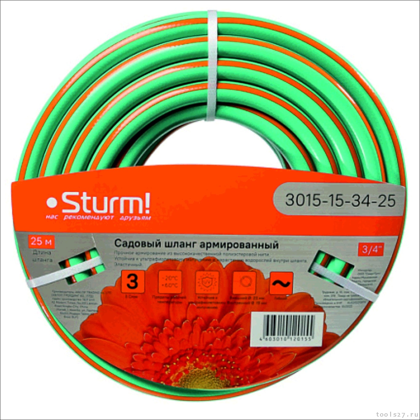 Шланг поливочный армированный, эластичный, 3х слойный, 3/4", 25 м, оранжево-мятный Sturm! 3015-15-34-25