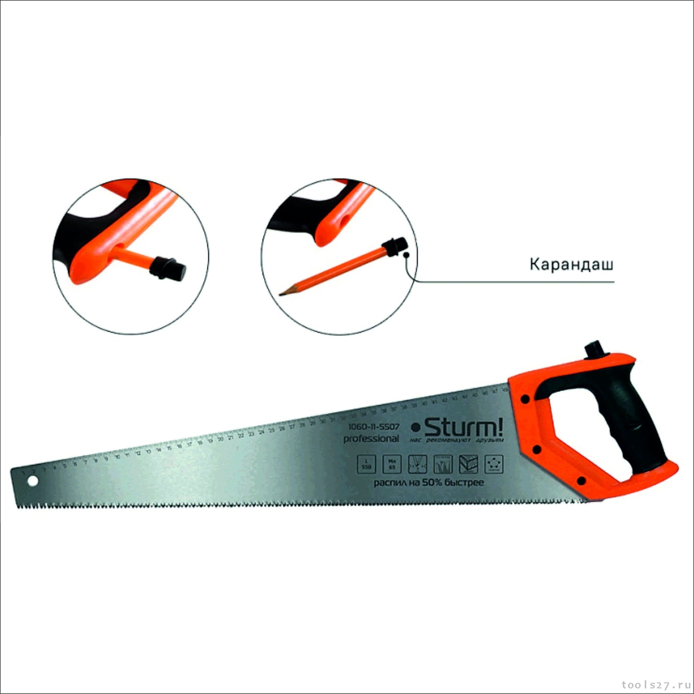 Ножовка по дереву Sturm! 1060-11-5507 со встроенным карандашом 1060-11-5507