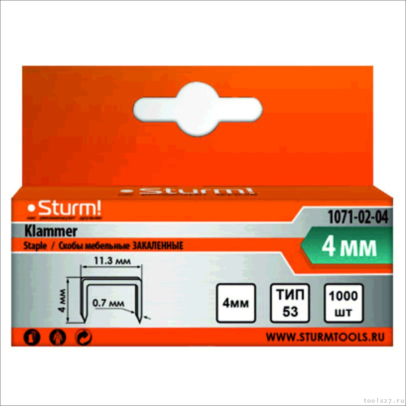 Скобы для степлера 4мм (тип 53), 1000шт,оцинкованные,закаленные, Sturm! 1071-02-04