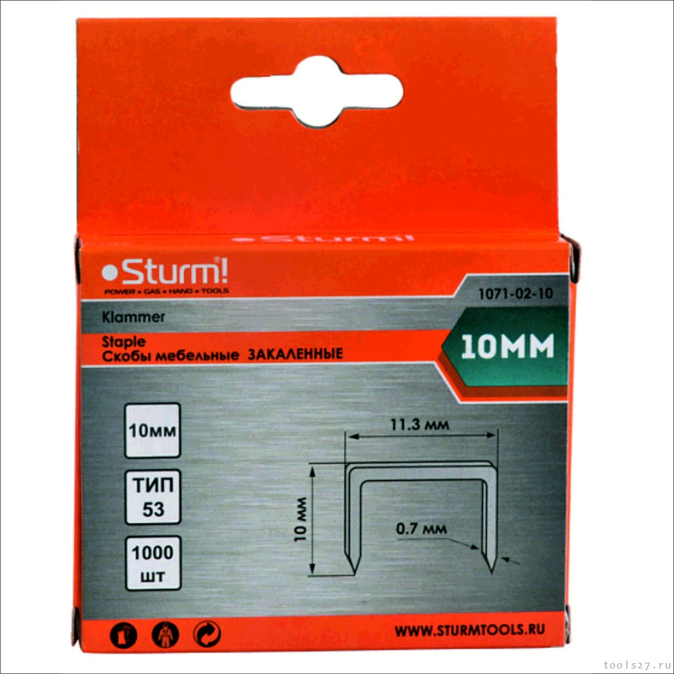 Скобы для степлера 10мм (тип 53), 1000шт,оцинкованные,закаленные, Sturm!
