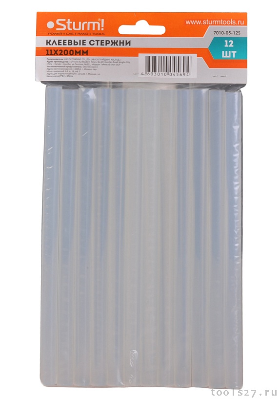 Клеевые стержни для пистолета, 11х200мм, 12 шт, прозрачные, Sturm! 7010-05-12S