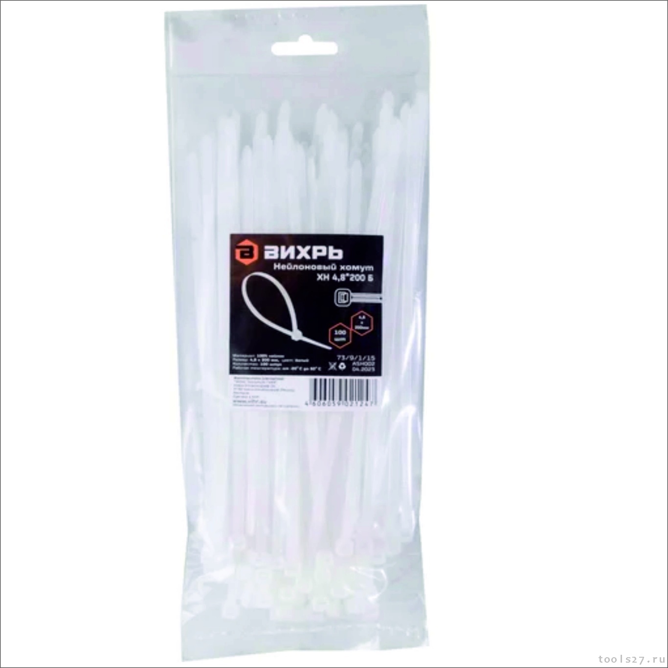 Хомут нейлоновый Вихрь 4.8х200 Б 100шт 73/9/1/15