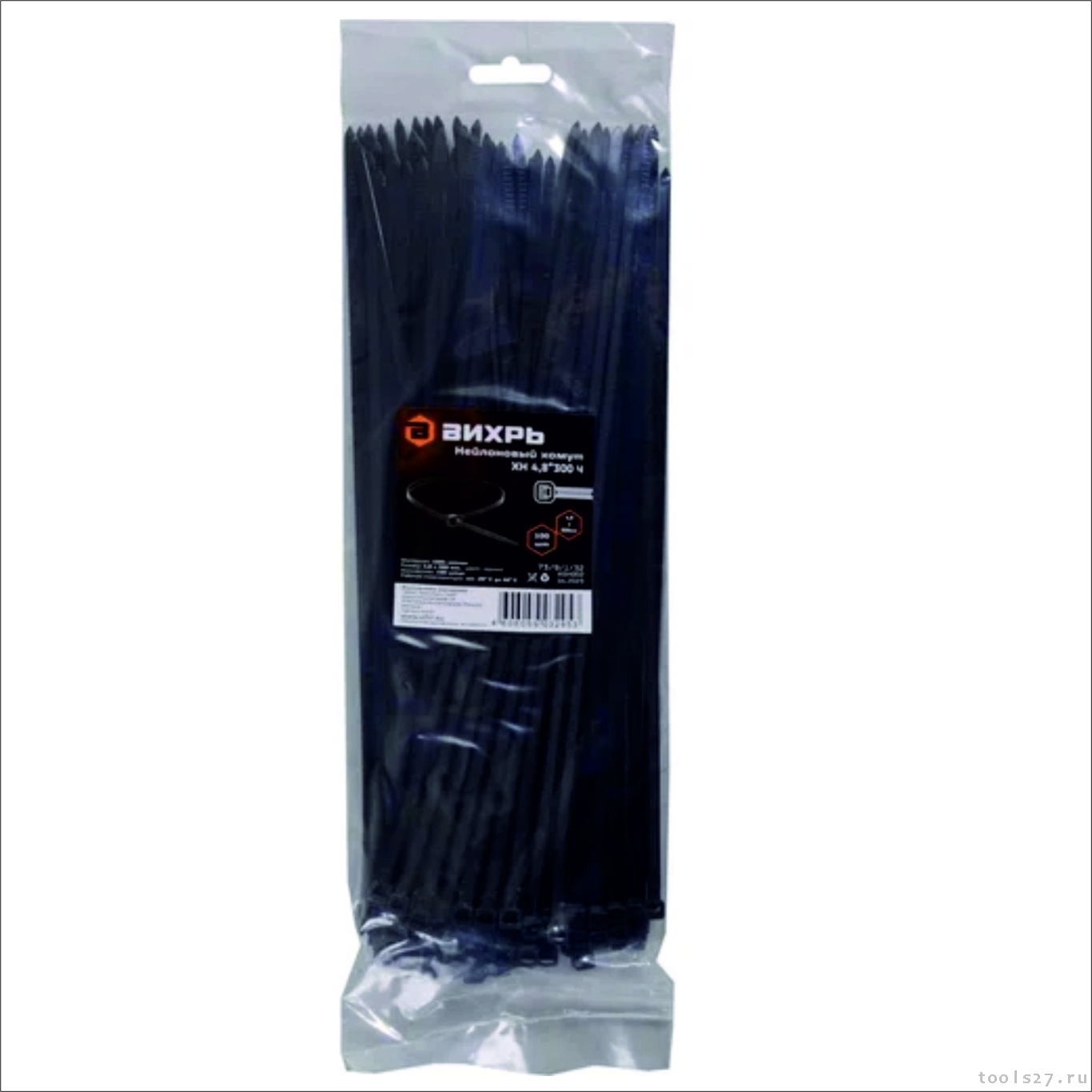 Хомут нейлоновый Вихрь 4,8x300 Ч 100 шт 73/9/1/32