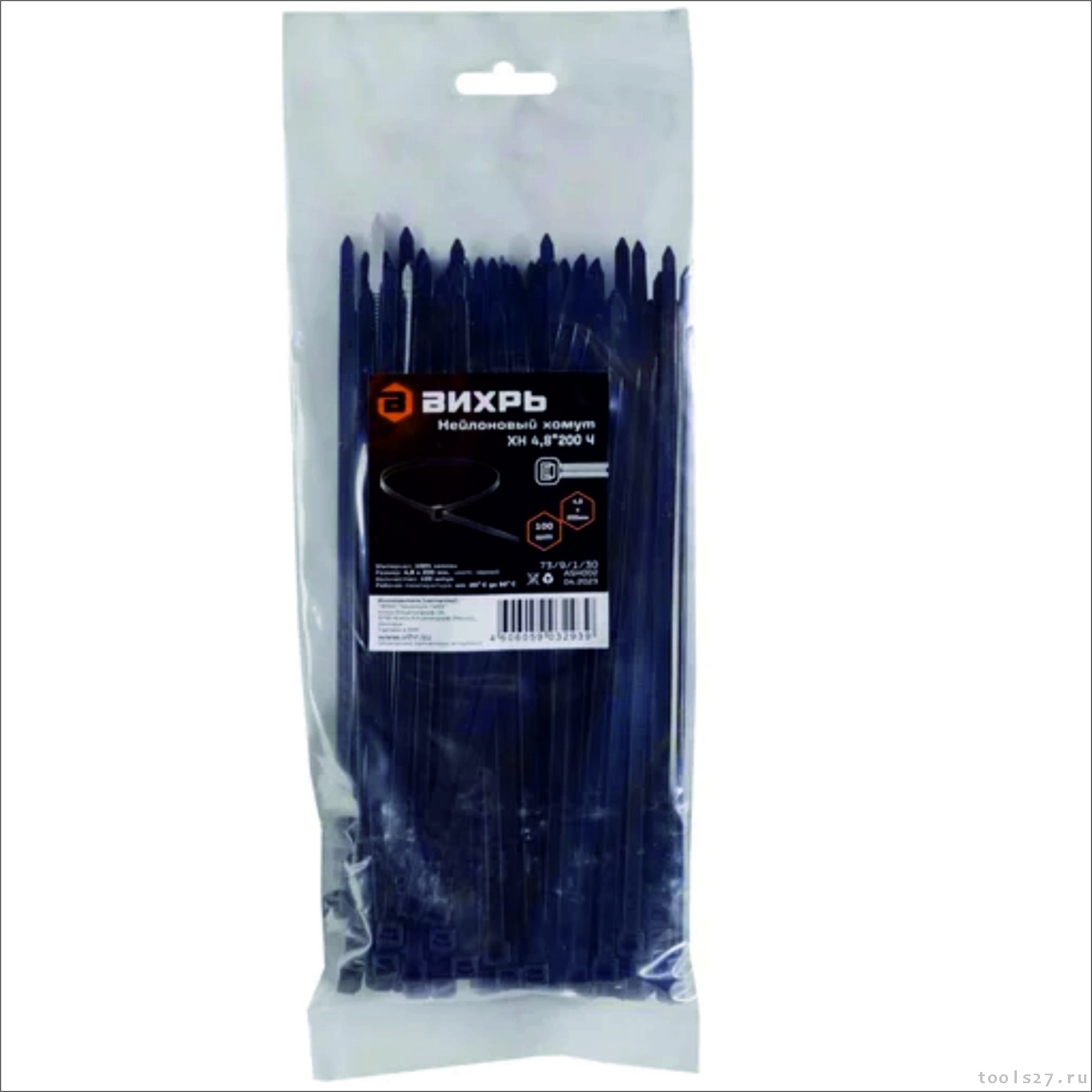 Хомут нейлоновый Вихрь 4,8x200 Ч 100 шт 73/9/1/30
