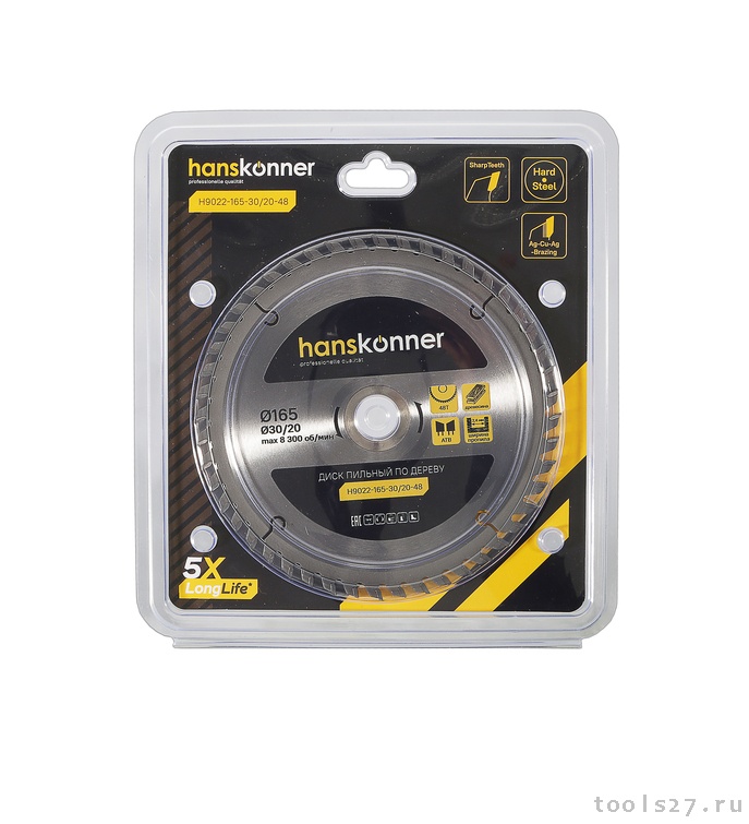 Диск пильный Hanskonner H9022-165-30/20-48