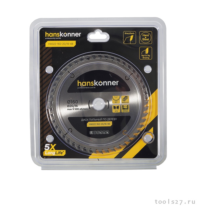 Диск пильный по дереву 160x20/16мм, 48 зубьев, Hanskonner H9022-160-20/16-48