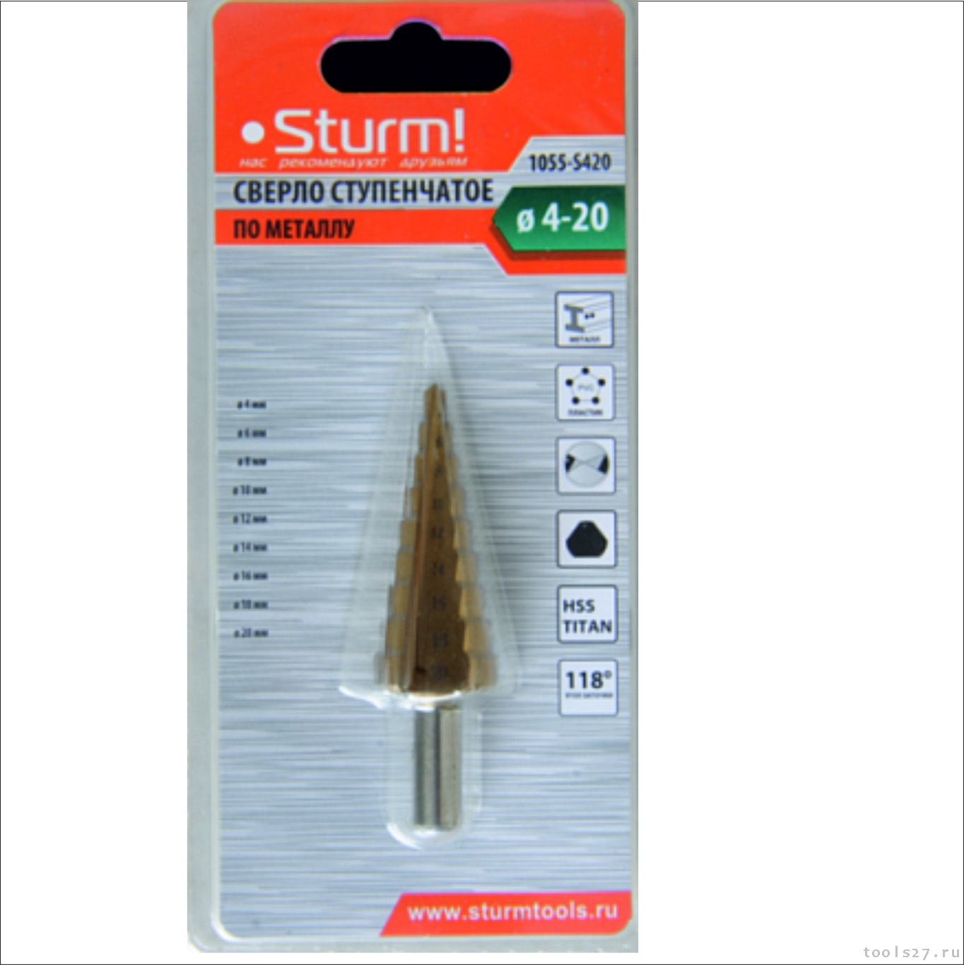 Сверло ступенчатое по металлу 4-20мм шаг 2мм HSS+TIN прямое Sturm!