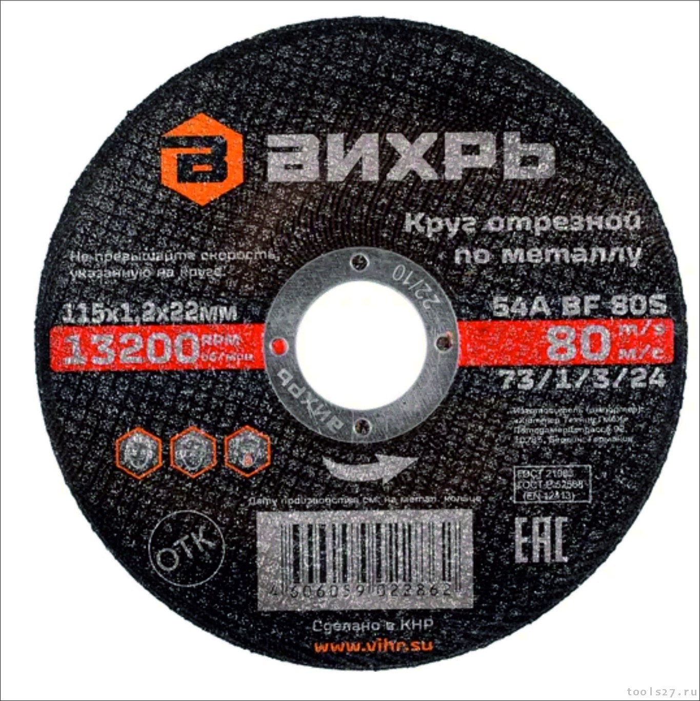 Диск отрезной по металлу (115х22х1.2 мм) Вихрь 73/1/3/24