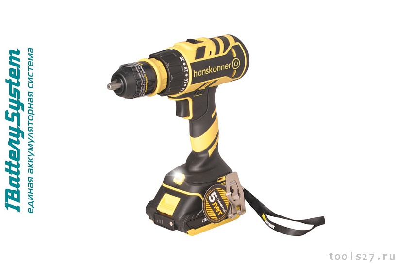 Шуруповерт аккумуляторный Hanskonner HCD1865C 1BatterySystem