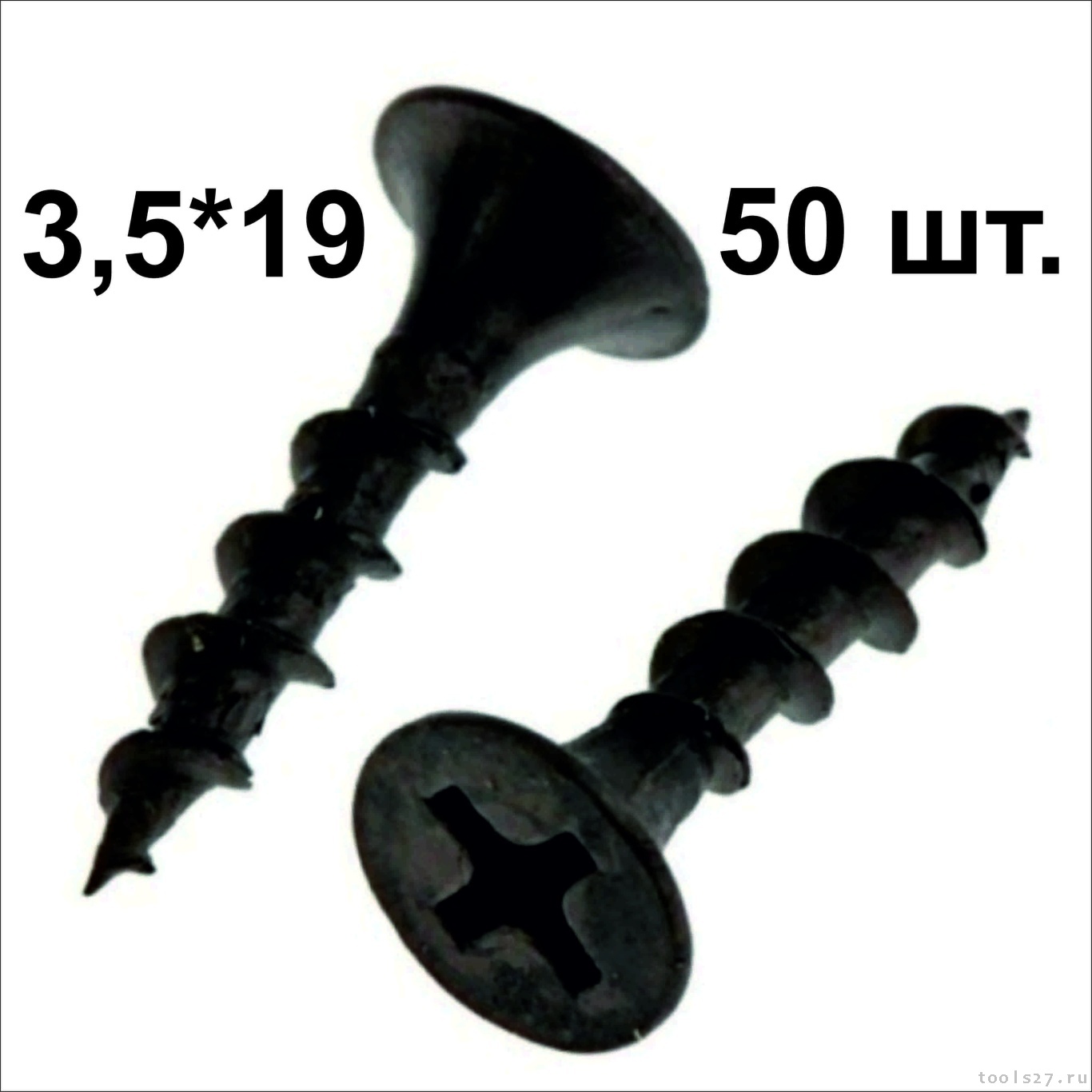 Саморез 3.5*19 ЧЕРНЫЙ (по дереву, фосфатированный, потайная головка, МТ), уп.50шт.