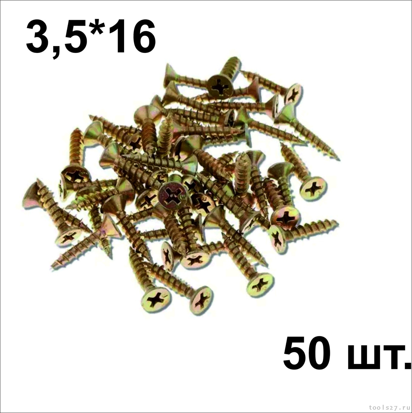 Саморезы по дереву и гипсокартону потайные острые оцинкованные 3.5x16 уп.50шт.