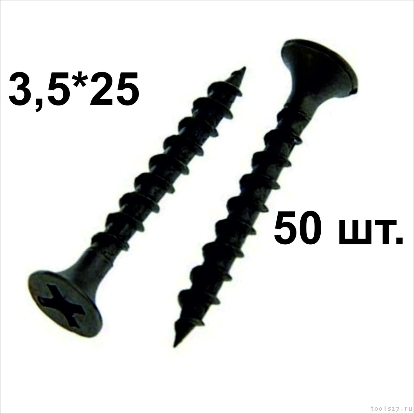 Саморез 3.5*25 ЧЕРНЫЙ (по дереву, фосфатированный, потайная головка, МТ), уп.50шт.