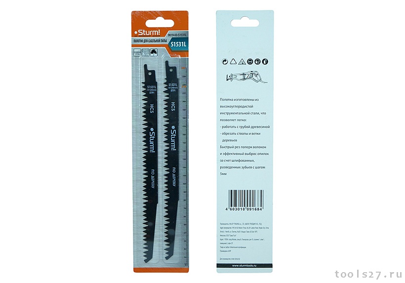Полотна для сабельных пил ДЕРЕВО 2шт 240/5мм (грубая древесина), Sturm! 9019-03-S1531L