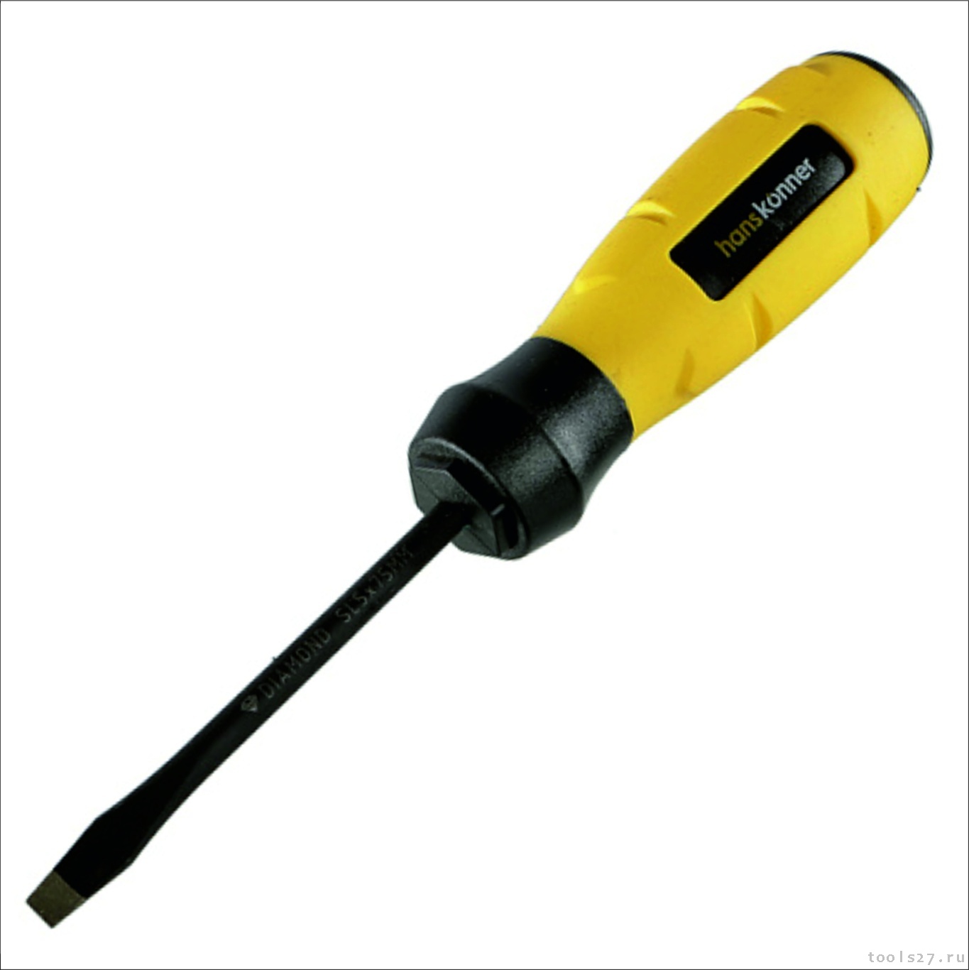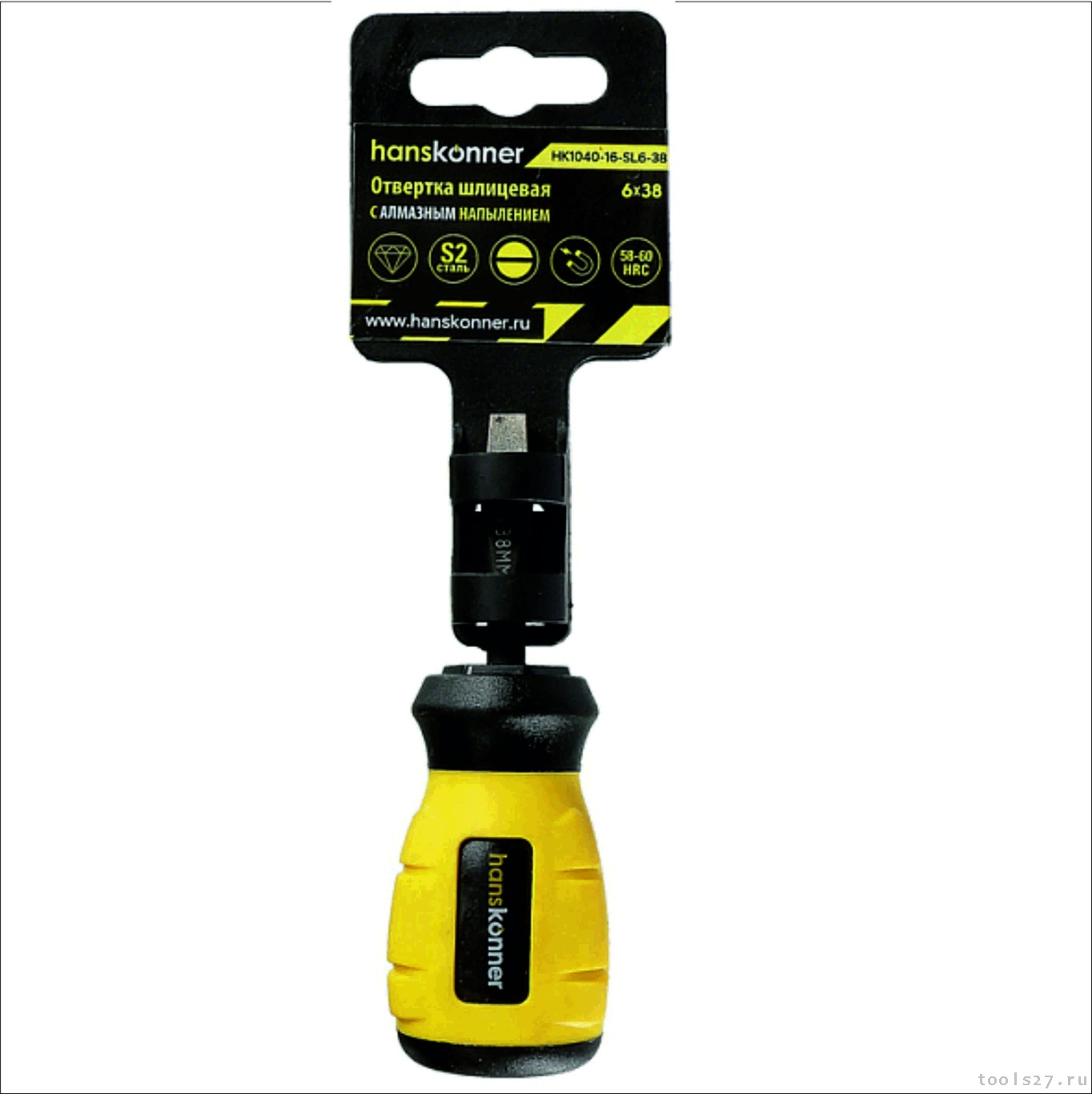 Отвертка шлицевая, SL 6x38, алмазный наконечник, S2, Hanskonner