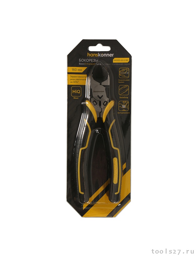 Бокорезы 160мм, эксц. шарнир,+30% к силе реза, СrV, TPR рук., Hanskonner HK1020-02-2-160