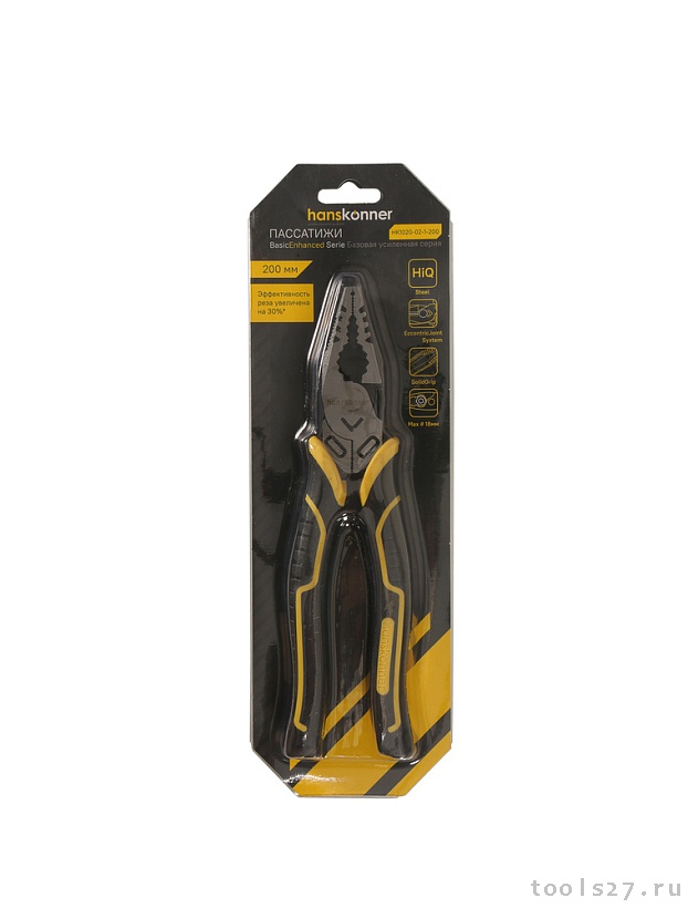 Пассатижи 200мм, эксц. шарнир,+30% к силе реза, СrV, TPR рук., Hanskonner