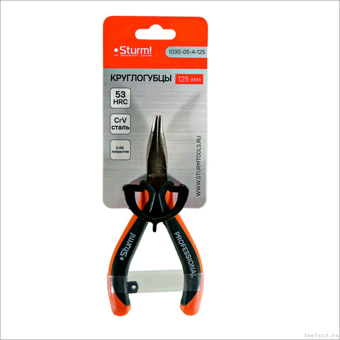 Круглогубцы изогнутые, 125мм, TPR рукоятки, никелированные, Sturm!1030-05-4-125