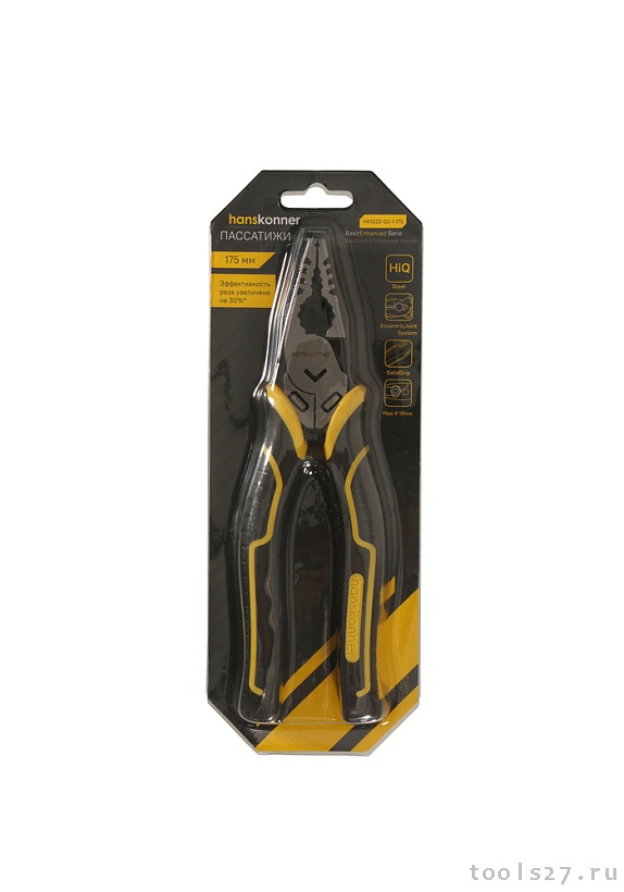 Пассатижи 175мм, эксц. шарнир,+30% к силе реза, СrV, TPR рук., Hanskonner HK1020-02-1-175