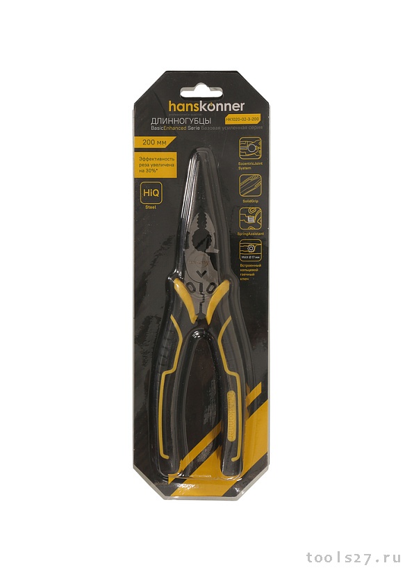 Длинногубцы 200мм, эксц. шарнир,+30% к силе реза, СrV, TPR рук., Hanskonner HK1020-02-3-200