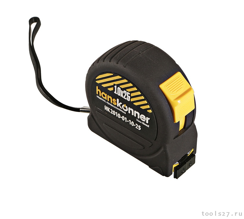 Рулетка 10x25мм, 2 стопа, корпус SoftTouch, супермощный магнит, Hanskonner HK2010-01-10-25