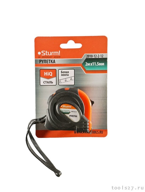 Рулетка мини 2x11.5мм, обрезиненный корпус, Sturm! 2010-12-2-12
