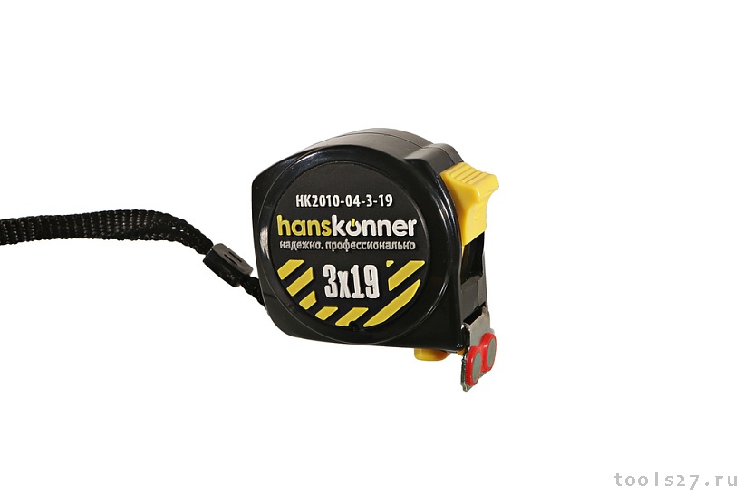 Рулетка 3x19мм, 2 стопа, компактн. корпус, 2 стопа,мощный магнит, Hanskonner HK2010-04-3-19