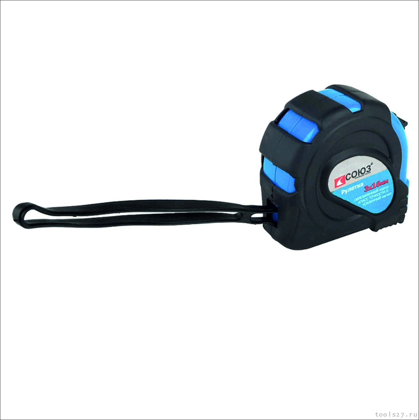Рулетка 3x16мм, обрезиненная, магнит на зацепе, СОЮЗ : 21316