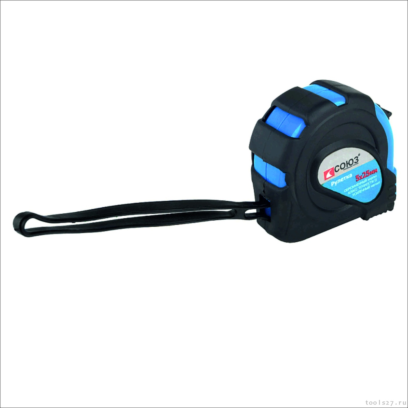 Рулетка 5x25мм, обрезиненная, магнит на зацепе, СОЮЗ 21525