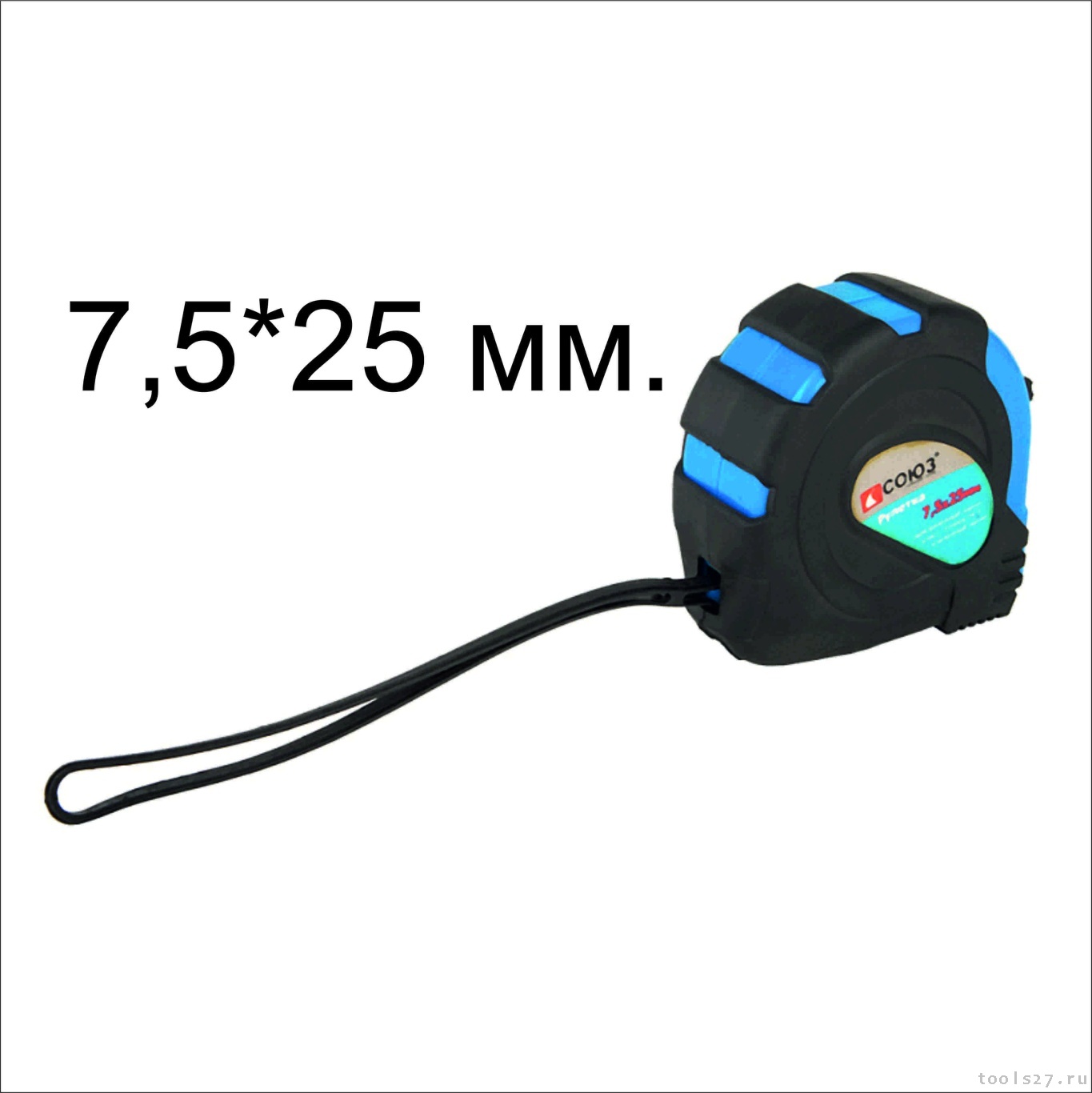 Рулетка 7,5х25мм, обрезиненная, магнит на зацепе, СОЮЗ 21825