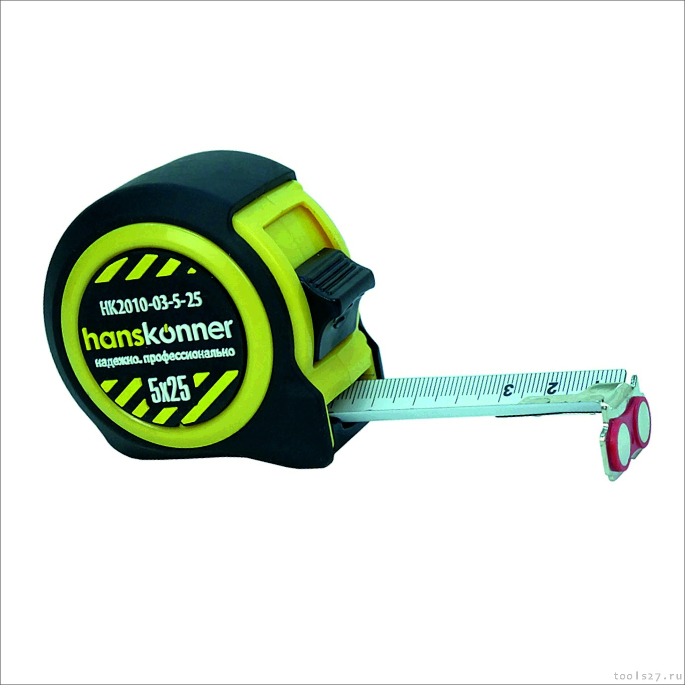 Рулетка 5x25мм, 2 стопа, компактный корпус, мощный магнит, Hanskonner HK2010-03-5-25