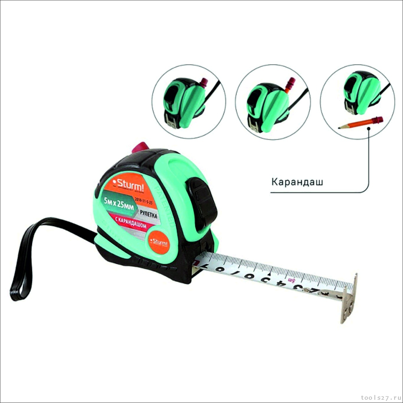Рулетка 5x25мм с карандашом, двухстор. полотно, магнит, серия Кулибин, Sturm! 2010-11-5-25