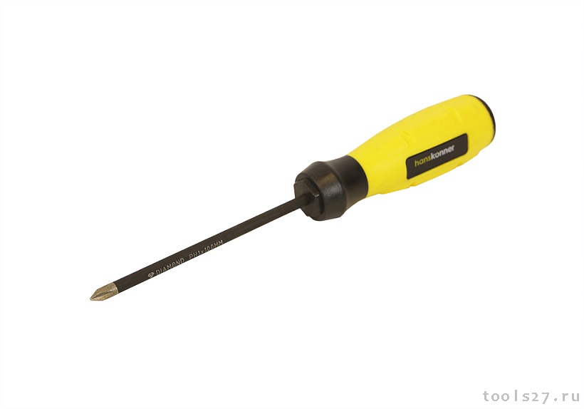 Отвертки имеют эргономичную двухкомпонентную рукоятку с рифлениями, исключающими проскальзывание, мягкая поверхность рукоятки делает работу комфортной. Рабочая часть выполнена из стали марки S2, наконечником с алмазным покрытием,что определяет ее прочность и износостойкость. Жало отвертки намагничено для удержания метизов при работе.