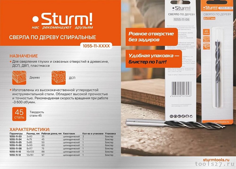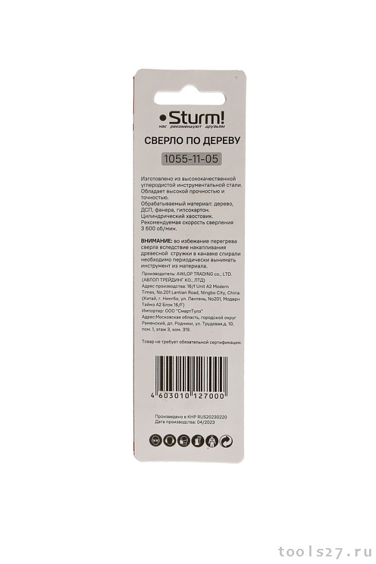 Сверло спиральное Sturm! 1055-11-05 (1071)