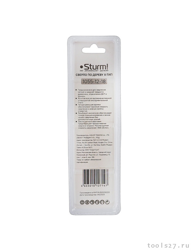 Сверло по дереву Х тип Sturm! 1055-12-18 (1075)