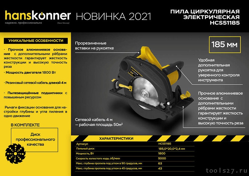 Пила Циркулярная Hanskonner HCS51185 (1136)