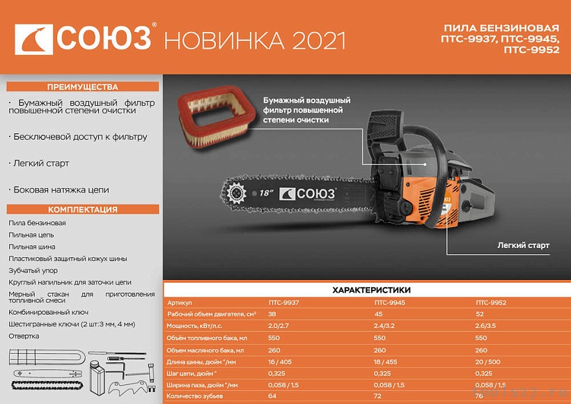 Бензопила СОЮЗ ПТС-9945 (1147)
