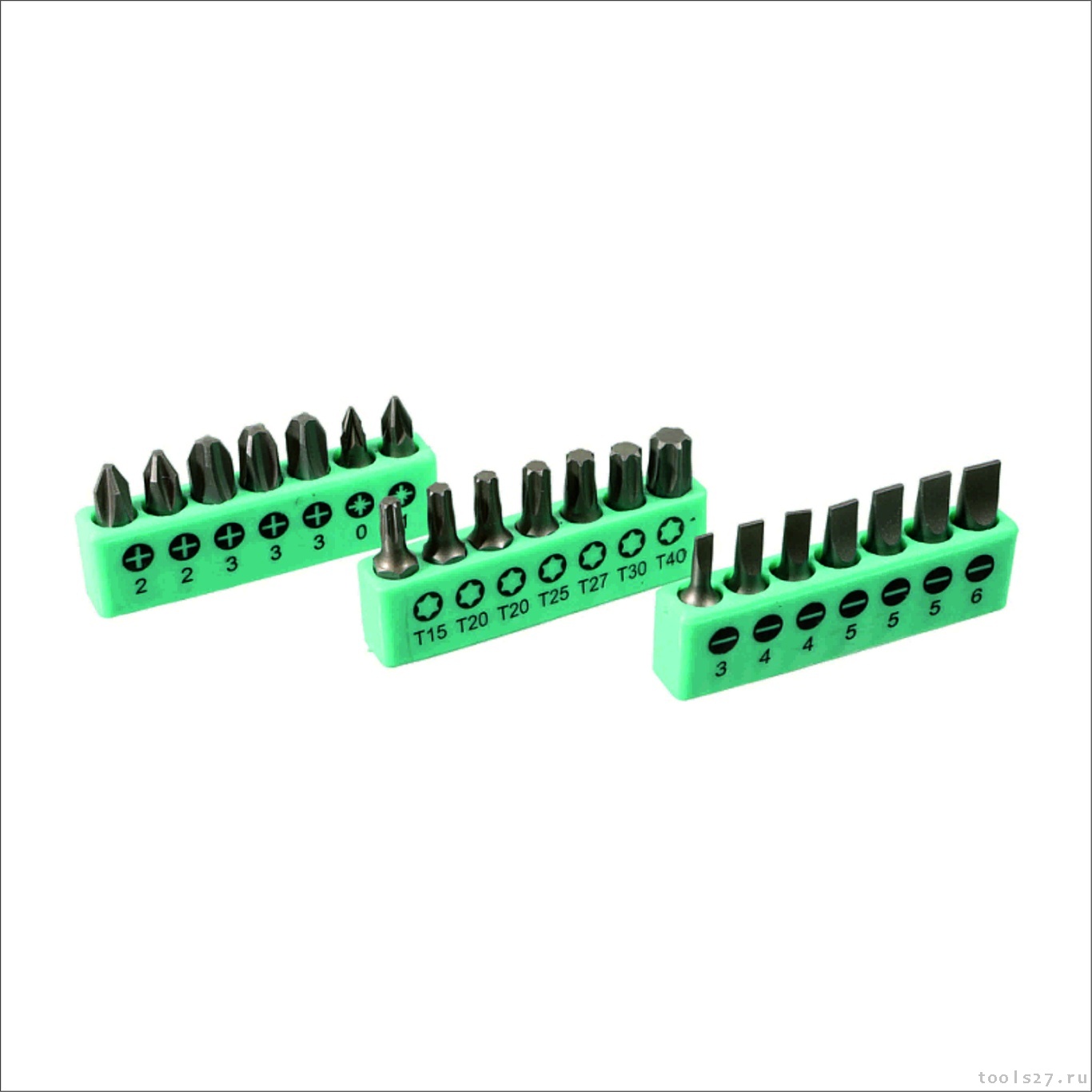 Рукоятка-адаптер, гибкий вал, биты: HEX2; HEX2,5; HEX3; HEX4; HEX5; HEX5,5; HEX6; TORX10; TORX15; TORX20; TORX25; TORX27; TORX30; TORX40. SL3; SL4; SL5; SL6; SL7;