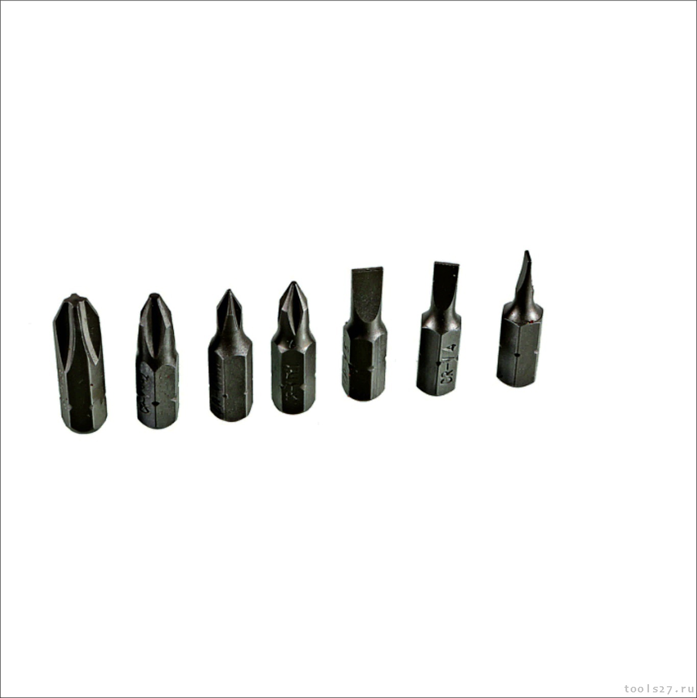 Дополнительные характеристики - Трещоточный механизм; Твердость 54-56 HRC; Намагниченная рабочая часть; Хромоникелевое покрытие бит;