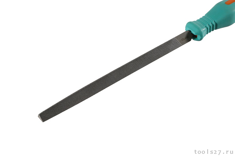 Рабочая часть выполнена из качественной инструментальной стали марки Т12 и имеет двойную перекрестную насечку. Рукоятка выполнена из пластика и имеет специальное противоскользящее покрытие инструмент по обработке твердых металлов, таких как сталь и чугун.
