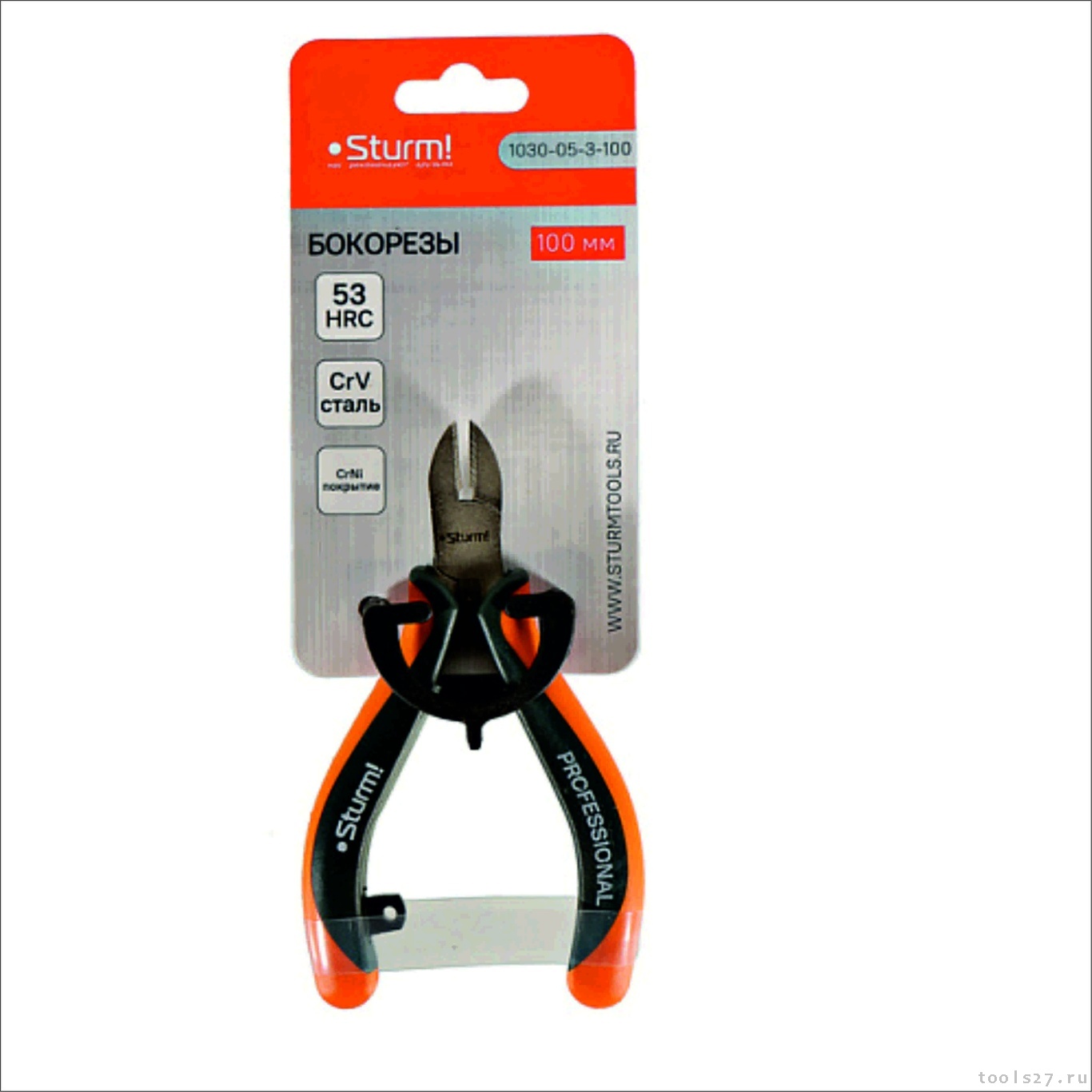 Бокорезы мини, 100мм, TPR рукоятки, никелированные, Sturm1030-05-3-100 (1183)