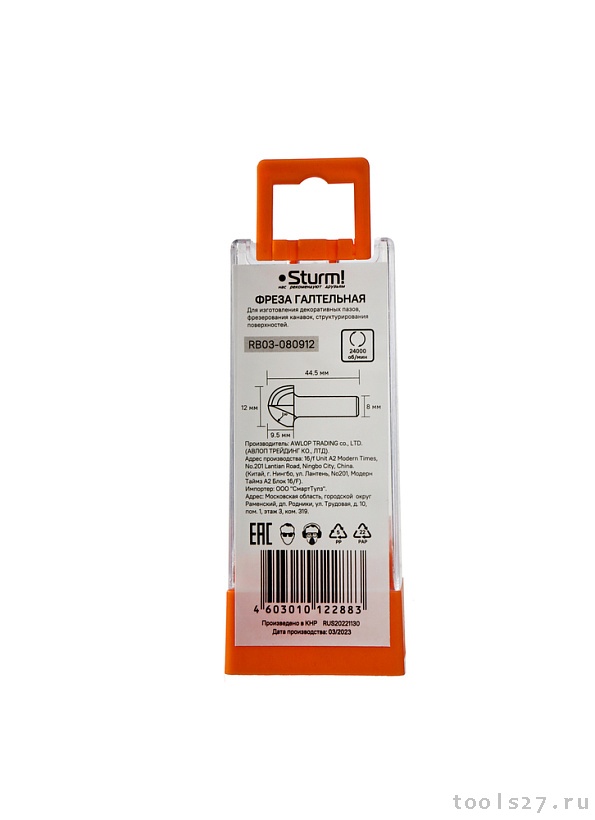 Фреза пазовая галтельная DxHxL 12x9,5x44,5 мм, хв.8 Sturm! RB03-080912 (1246)