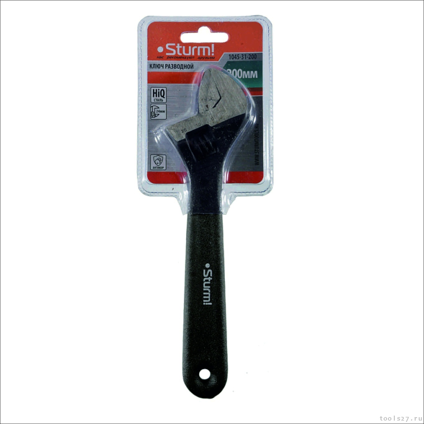 Разводной ключ, 200 мм, зев 24мм, обливная ПВХ рукоятка, Sturm! 1045-31-200 (1252)