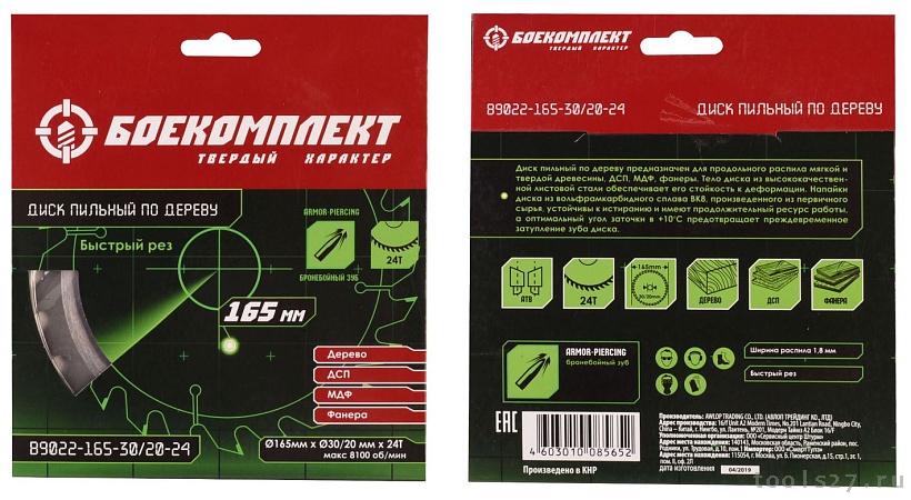 Диск пильный БОЕКОМПЛЕКТ B9022-165-30/20-24 (1293)