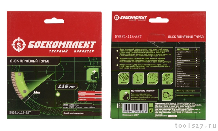 Диск алмазный БОЕКОМПЛЕКТ B9021-115-22T (1304)