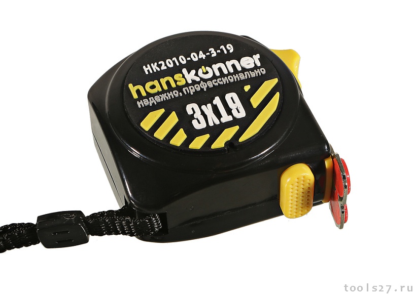 Рулетка 3x19мм, 2 стопа, компактн. корпус, 2 стопа,мощный магнит, Hanskonner HK2010-04-3-19 (1336)