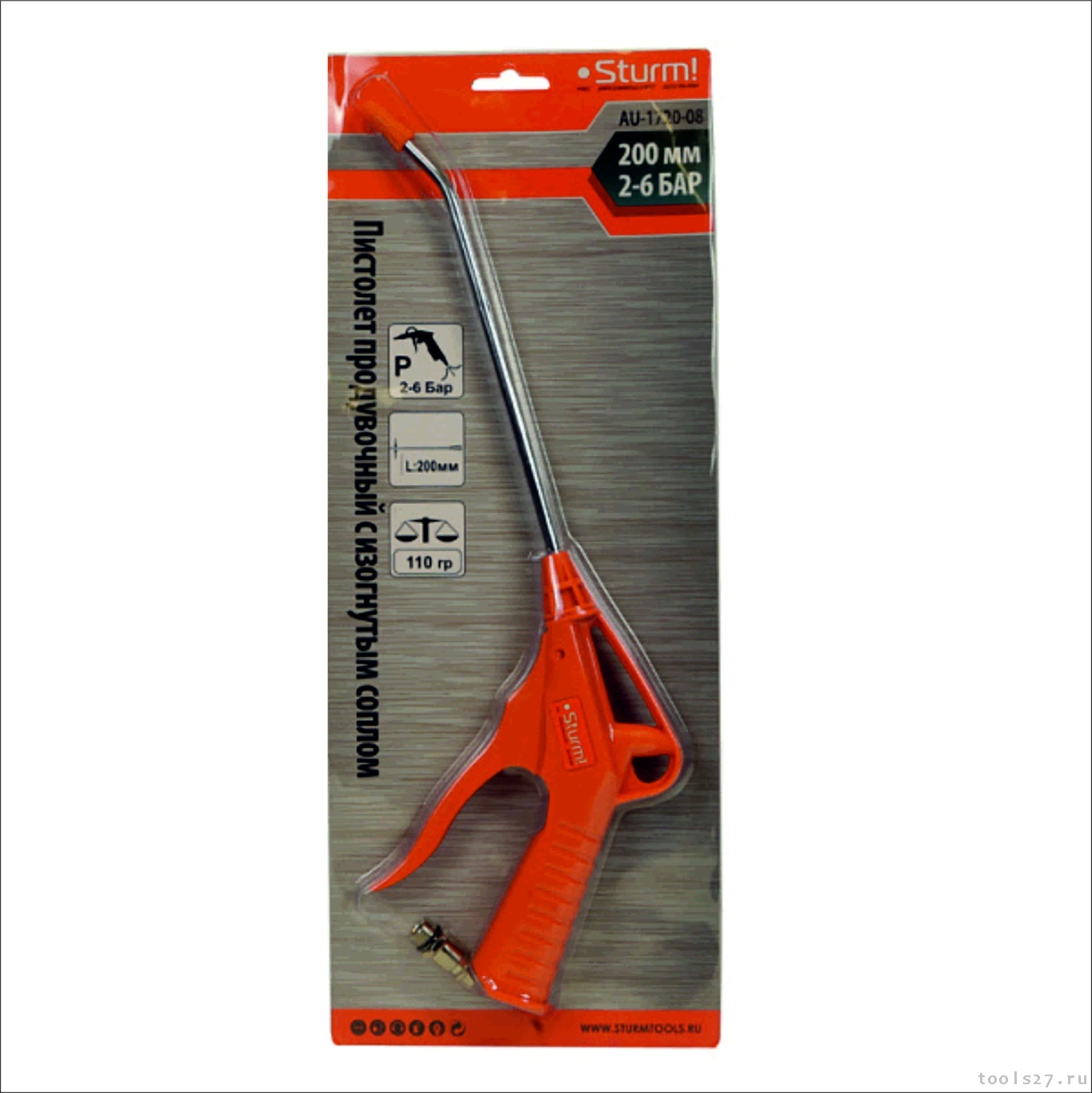 Пистолет продувочный, изогнутое сопло 200 мм, 2-6 бар, d=3, 8мм Sturm! AU-1720-08 (1365)
